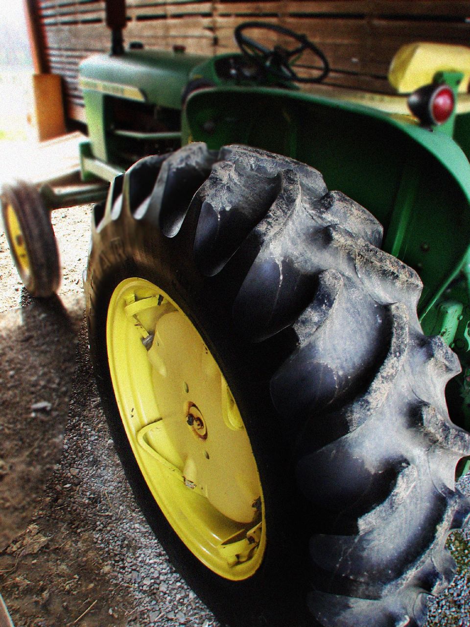 Sometimes, we should stop to see the beauty in the simplicity of the equipment itself – John Deere tractor tires. Many of us growing up on the farm can remember looking up and seeing how big those tires seemed. Today we pay homage to John Deere tires: