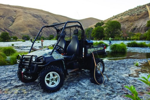 A standard spray on bed liner keeps you from worrying about banging up your new outdoor toy, and removable sides gives you the option for a high capacity flat bed with plenty of tie-down points. You won’t have many hauling limitations with this line of Deere’s Gator XUV’s.