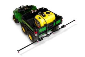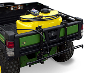 To transform your John Deere XUV825i into a sprayer, consider this 25-gallon bed sprayer for all of your yard needs. Larger versions of the sprayer are available as well in 45-gallon and 90-gallon sizes.