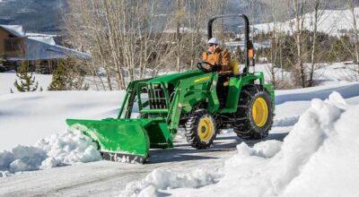 Don’t own a snow blower? No problem. Rear blades are also great pieces of equipment to consider when removing snow. When working on a gravel driveway with a rear blade, set the outer portion of the blade well behind the portion in the center of the driveway. This will ensure the snow is pushed off to the side of the driveway. Much like taking on deep snow with a snow blower, set the rear blade higher if needed to remove a top layer of snow first.