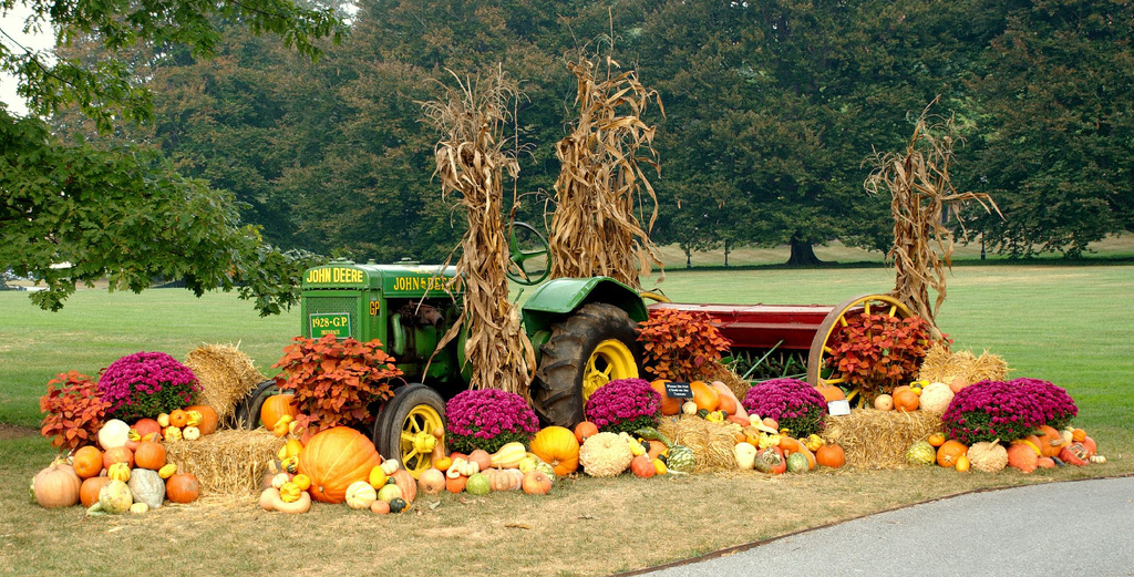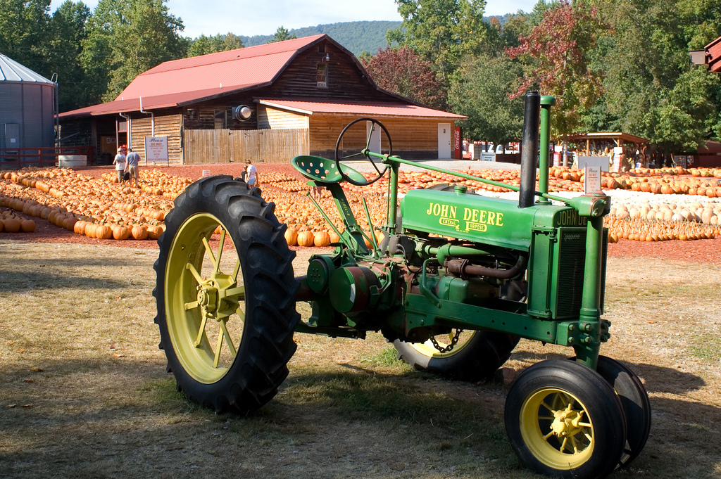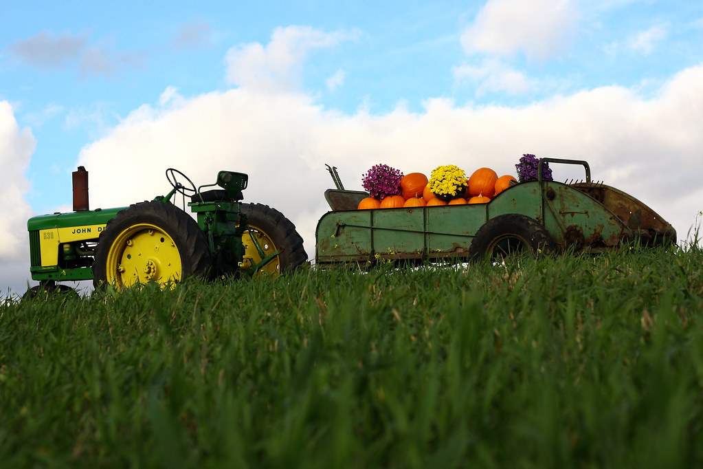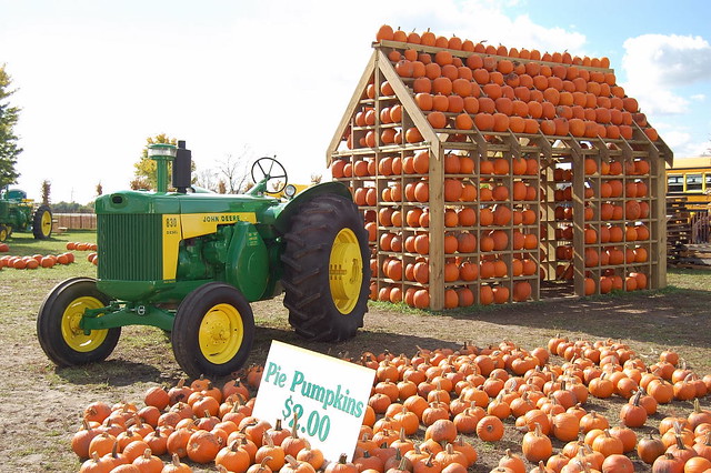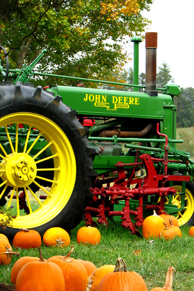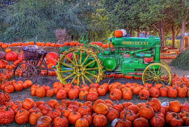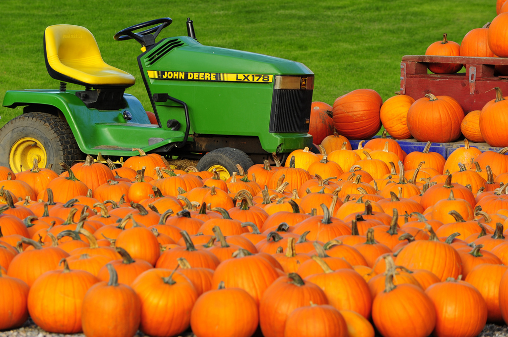 The fall harvest season is upon us, and with that comes Halloween and pumpkin fields. It is a place of wonder for children, and as adults we can also appreciate the beauty of John Deere equipment juxtaposed against a pumpkin orange field.