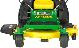 The John Deere Z525E comes with either a 48 or 54-inch Accel Deep Mower Deck that provides a clean cut every time. The deck has a stamped-steel, deep, flat-top design for optimal performance. The mower deck itself is suspended from the vehicle for a smooth, level cut. Adjustable mower wheels help smooth out the mowing job.