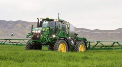 John Deere recently announced the new John Deere R4044, a lightweight, 1,200-gallon capacity sprayer. The machine is specifically designed for producers who value high levels of productivity and accuracy with reduced crop and soil impact. The John Deere R4044 joins the 4-Series Sprayer family, and it is 9 percent lighter than the existing R4045 Sprayer.