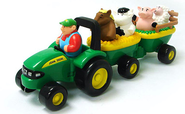 The “Animal Sounds” Hay Ride playset from John Deere gives little ones a chunky tractor that pulls along farm animals. The animals themselves are removable and make realistic sounds when they are pushed down. Additionally, the toy plays “Old McDonald” when the farmer figure is pushed!
