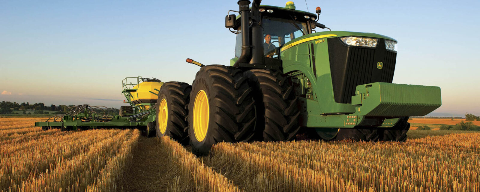 The 9R Series is truly a beast of the John Deere product line. These tractors provide 360 to 560 engine horsepower, making them exceptional for the largest jobs regardless of ground conditions. This lineup is the definition of power. You don’t have to compromise efficiency to get the desired power. With 360 to 620 horsepower, hitch-lift capacity of up to 20,000 pounds, and a hydraulic flow of up to 115 GPM, John Deere 9R series tractors productively take on all challenges presented on the field.