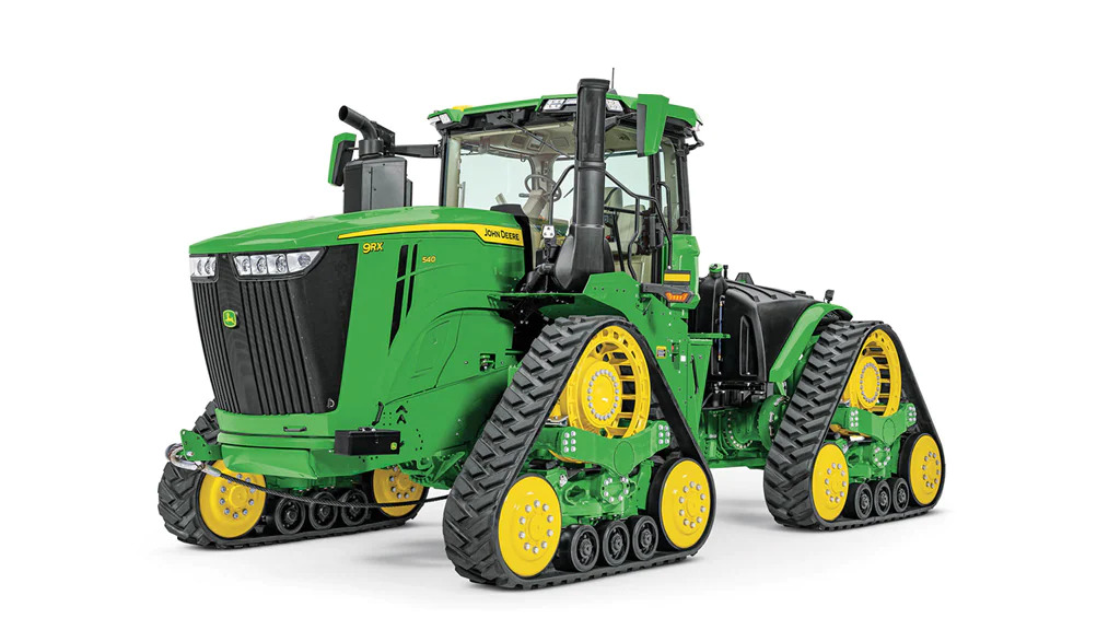 The John Deere 9RX series tractors have top-of-the-line models like the 9RX 490, 9RX 540, 9RX 590, and 9RX 640. These tractors have a 4-post cab suspension system that makes for a smooth and comfy ride. The cab is roomy and well-designed for maximum comfort during those long hours in the field.
