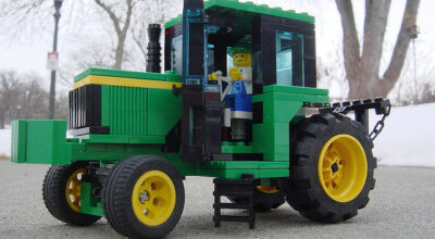 While there aren’t any official John Deere Lego sets, as evidenced by the images below, there’s no shortage of John Deere Lego tractors and combines that have been created by Deere fanatics.