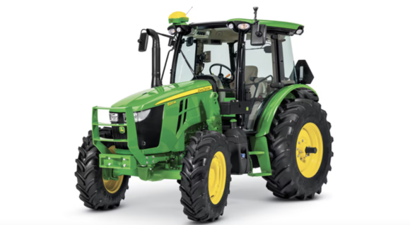 Tackle tough jobs with the John Deere 5120M utility tractor, featuring a 123.5 HP engine, multiple transmission options, and a heavy-duty hitch.